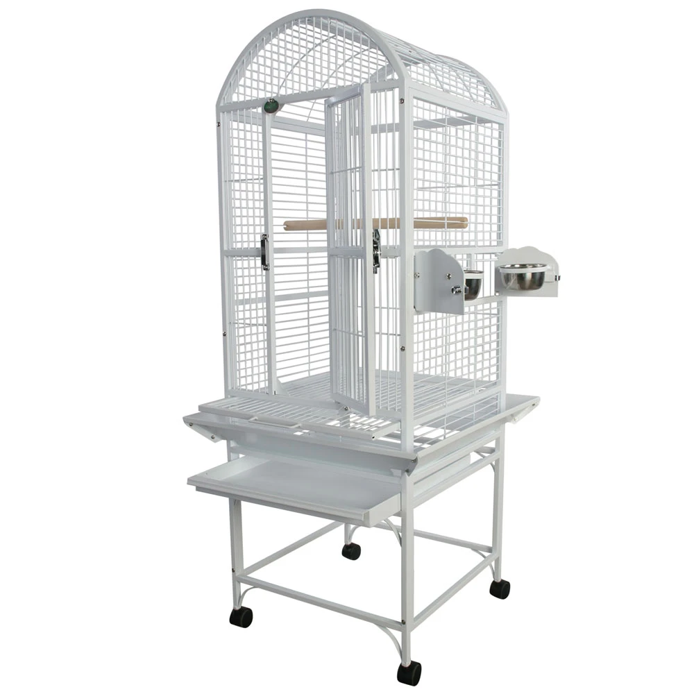The perfect home for your feathered friend. Our dometop bird cage features bird proof front door and feeder door locks. Slide-out grill and tray for easy cleaning.