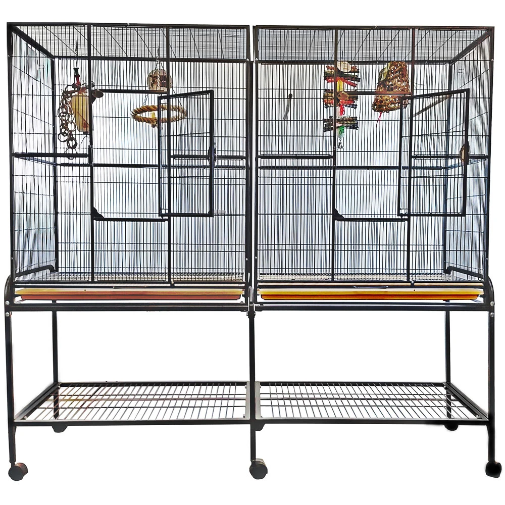 A&E Cage Company Double Flight Cage with Divider is a versatile bird cage for multiple birds or sugar gliders. As with all of A&E quality flight bird cages, this flight cage is guaranteed to have a non-toxic, bird safe, baked-on hardened powdercoating.
