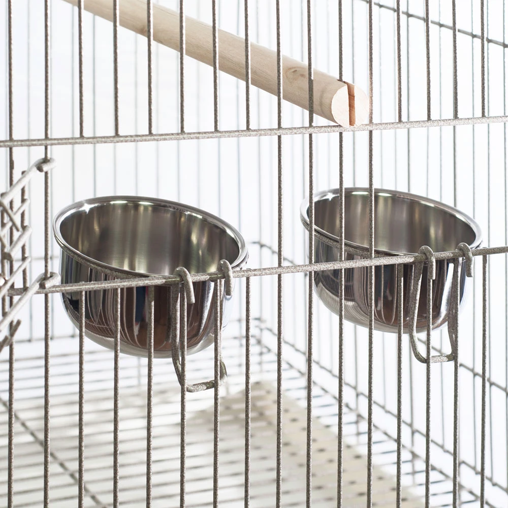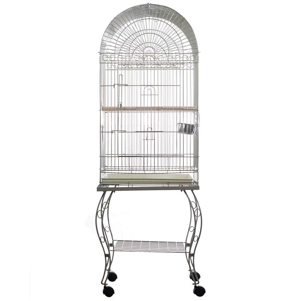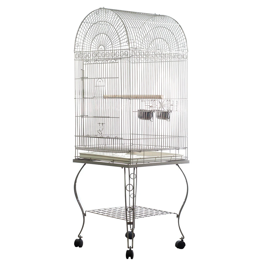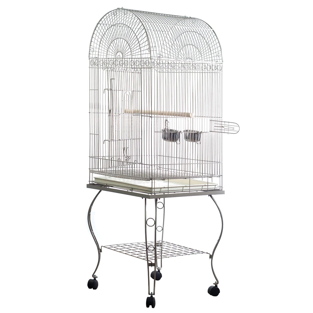 This bird cage has an open top feature which allows your bird come and go freely or can be used as a play stand by using the perch provided. This bird cage also comes with a removable stand with built in storage shelf.