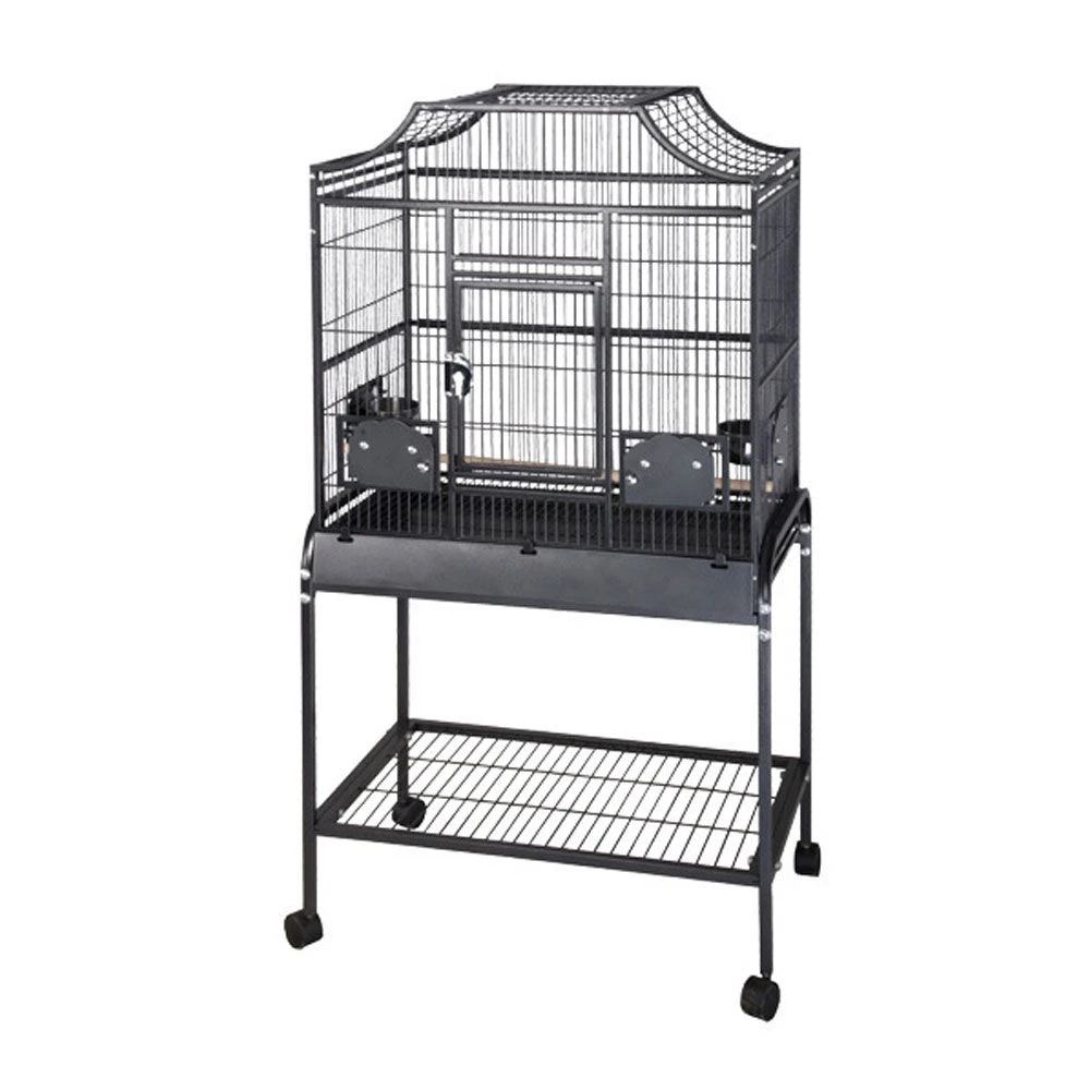 A&E Cage Company Elegant Flight Cage is the perfect way to let your birds stretch their wings safely and securely. This cage features a bird proof front door and feeder door locks as well as a front door safety latch. It also offers four swing-out feeder doors, four stainless steel feeder cups, and dual perches. A large front door provides easy access and the slide-out grill tray make cleaning it easy. This cage also has a bottom shelf for additional storage. It’s made of durable wrought iron finished in a powder coating that comes in a variety of colors and it also has casters for easy mobility.