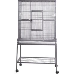 A&E Cage Company Flight Cage & Stand this roomy cage encourages your beaked buddies to flap around to their hearts content. The included removable stand keeps your birds elevated and off the floor, while the slide-out tray and grate make it easy to keep their home tweet home clean as a whistle. Encourage your feathered flock to indulge their natural flying instincts and stretch their wings with the A&E Cage Company Flight Bird Cage & Stand.