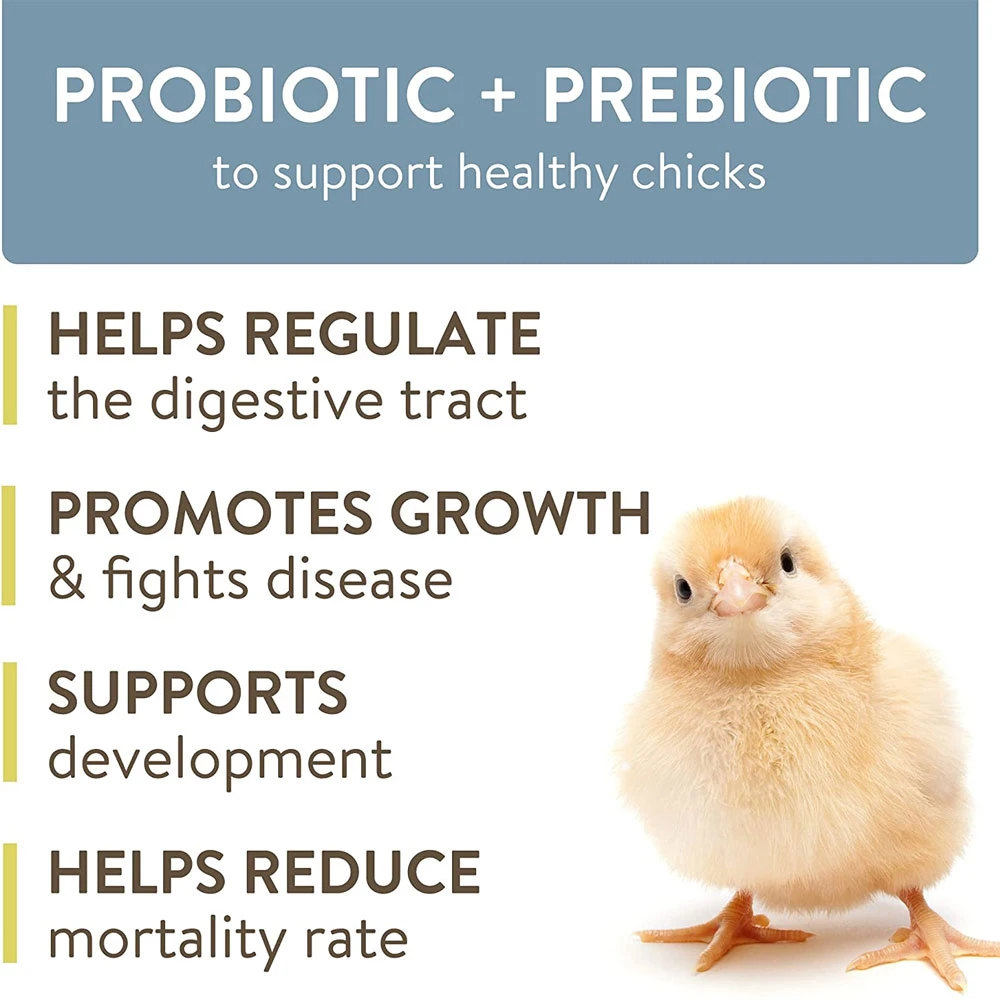 - Helps reduce salmonella: Establishes good bacteria in the digestive system to help address pasty butt, diarrhea, pathogens like Salmonella and daily stressors like changes in temperature.