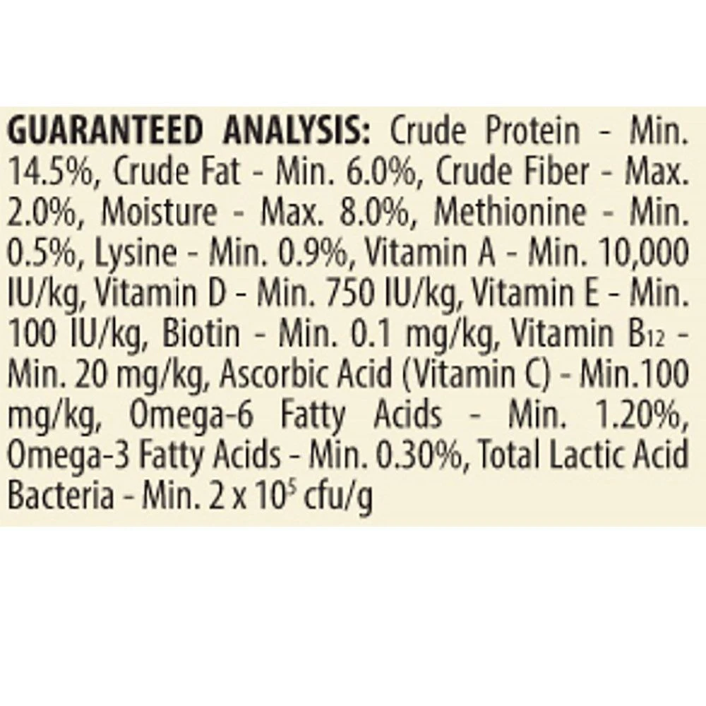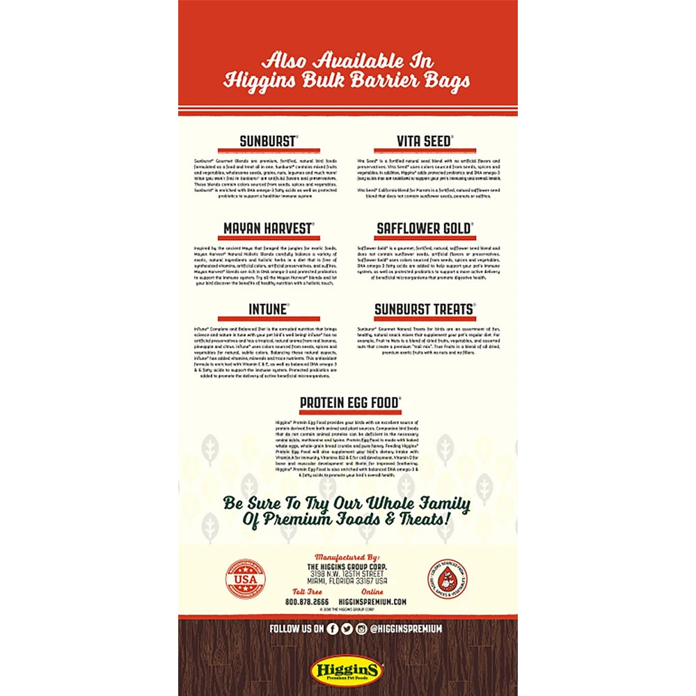 Higgins Protein Egg Bird Food, Formulated with real baked eggs plus whole grain bread, wholesome grains and seeds, it provides protein from animal and plant sources to supplement your bird’s daily food. The extra protein is great for nestlings and birds that are nesting or moulting. It’s enhanced with vitamins, minerals, omegas and superfoods like algae and green tea extract to support growth and development, healthy muscles, bones and feathers. Plus, it’s made in the USA and can be fed to all birds.
