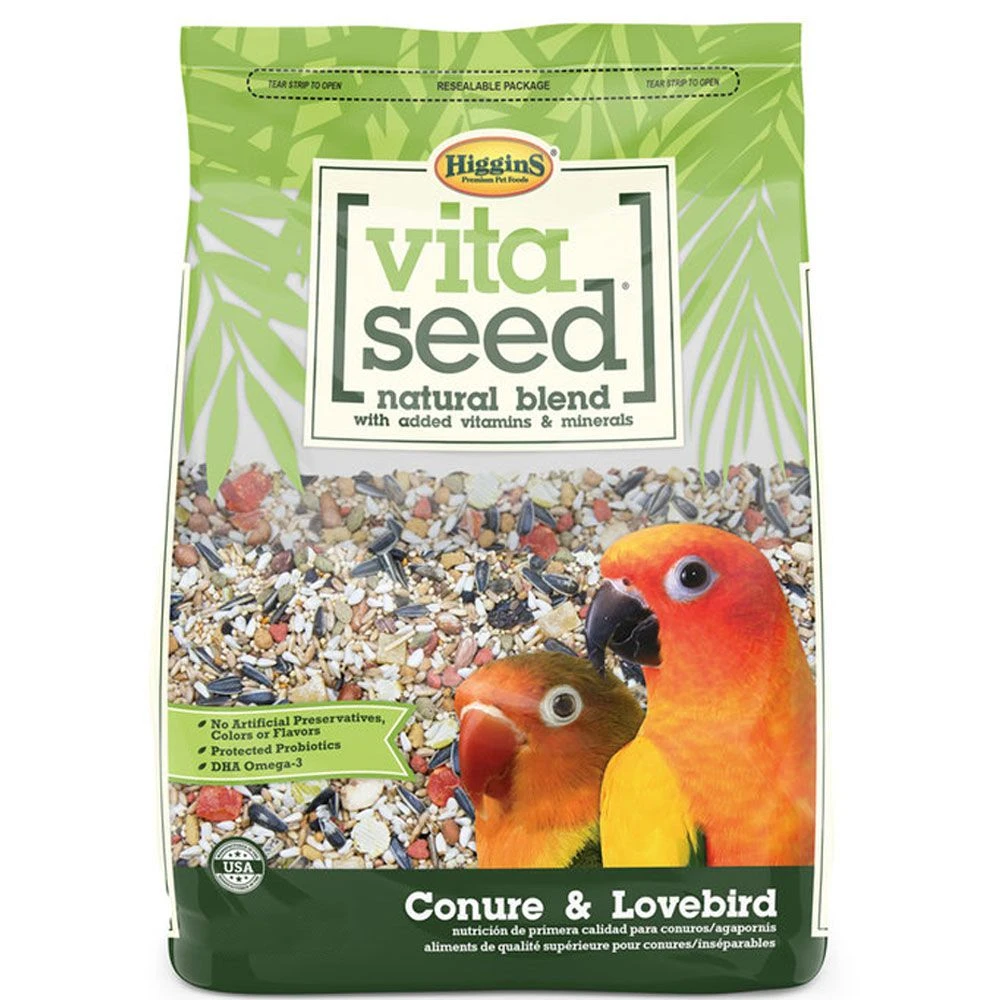 Higgins Vita Seed is the premium, natural seed blend with added vitamins, minerals and trace nutrients. Vita Seed is free of artificial preservatives, flavors and chemical colors your companion bird doesn’t need. Instead, Higgins uses colors sourced from seeds, spices and vegetables. Vita Seed is enriched with balanced omega-3 & 6 fatty acids to support the immune system as well as protected probiotics to promote digestive health and immunity by supporting the delivery of more active, beneficial bacteria to the intestinal tract.