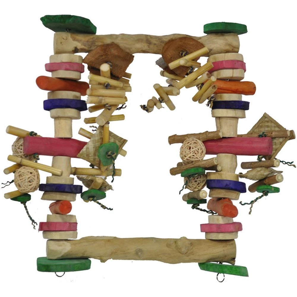 Java Wood Toy – Munchy Swinger will have a ball with all these textures – java loofa calcium sisal bamboo coconut and vine balls that are strung on either side of this swing. Includes a natural wood perch and is constructed from natural earth-friendly materials. Suitable for African Greys Amazons Eclectus smaller macaws and cockatoos.