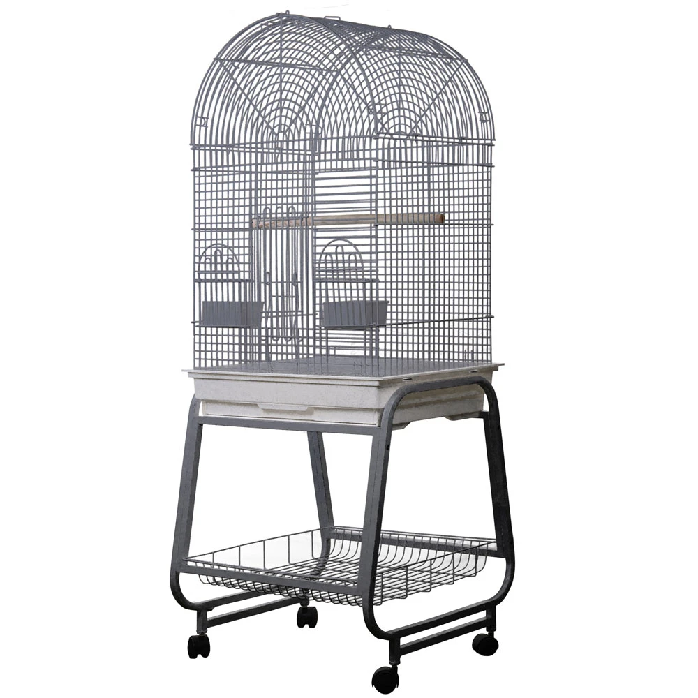 The Seneca Dometop Bird Cage lets you have more fun with your birds because it makes maintaining their cage much easier. A storage tray allows you to keep your bird supplies close by and organized. A removable tray with powder-coated finish takes the work out of cleaning the cage. Customize with your choice of colors. A durable construction will keep your medium-sized birds happy in the Seneca Dometop Bird Cage. This cage comes with two plastic feeder stations and one wood perch.