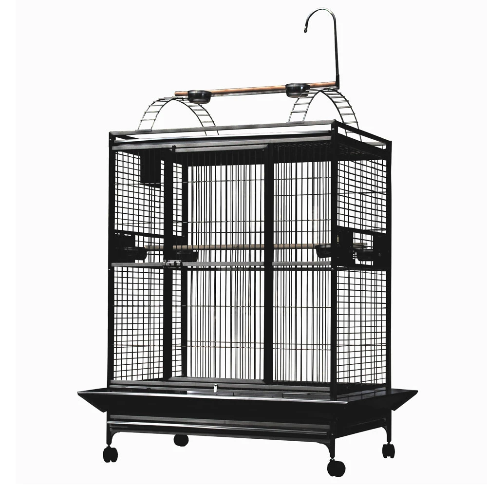 The play top features 2 stainless steel food/water bowls, natural wood perch and toy hook, your beautiful bird will love playing and hanging out up there. With 4 smooth rolling casters for easy mobility, this bird cage will keep you and your perfect parrot happy for many years to come.