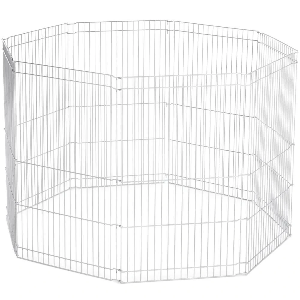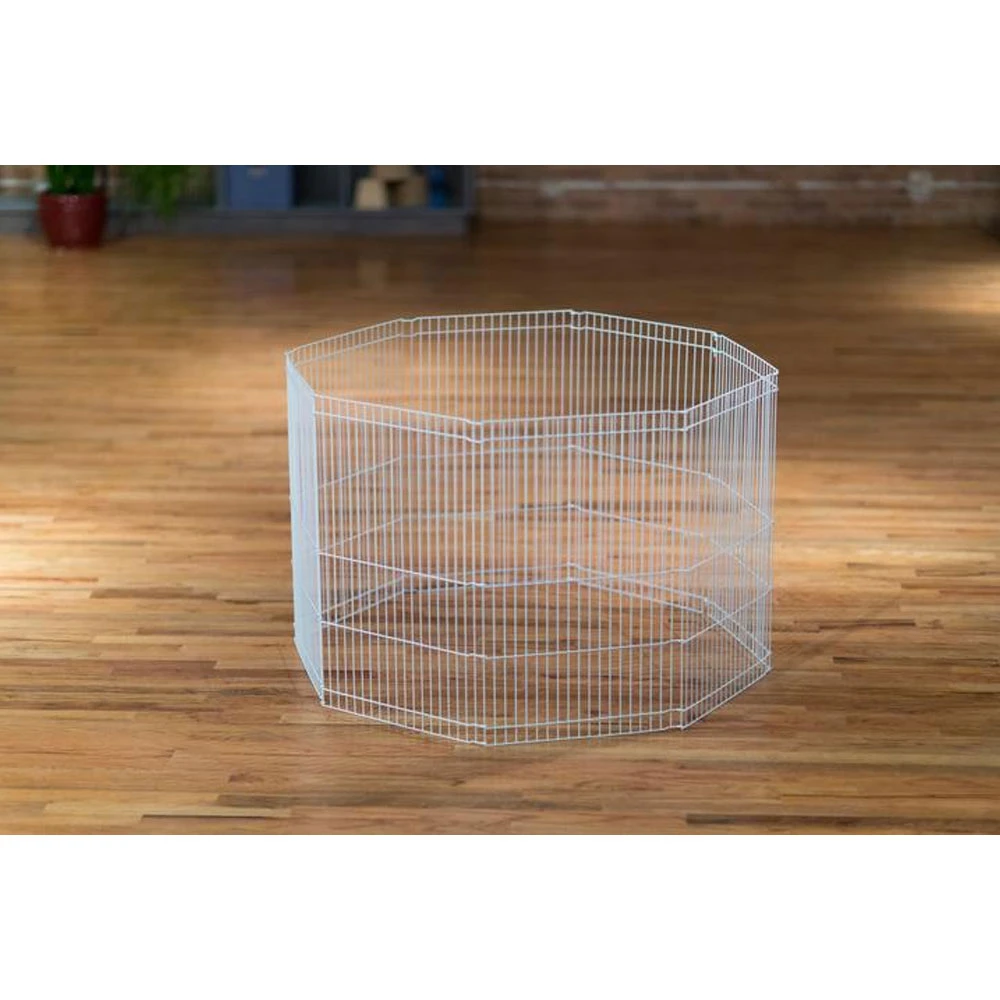 Prevue White Pet Playpen for Small Animals allows for interactive play with pets without turning them loose and can be used either indoors or outdoors. Intended for use by ferrets, rabbits and guinea pigs. Pen measures 18″ long, 29″ high with a diameter of 10 ft2