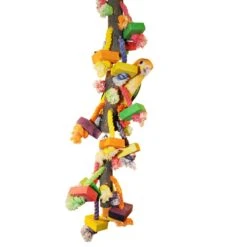 Happy Beaks Toy – Real Wood With Hanging Blocks On Rope (Large)